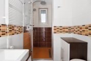 S realizací jsem spokojen. Komunikace s dodavetelem byla na vysoké úrovni, navržený design přesně splnil mé představy. Termín byl překročen, což však bylo způsobeno masivnějším zarovnáváním nerovností starší zástavby. Výborný je zejména prostorný sprchový kout místo staré malé vany. Příště bych pouze zvětšil počet úložného prostoru přidáním jedné závěsné skříńky.