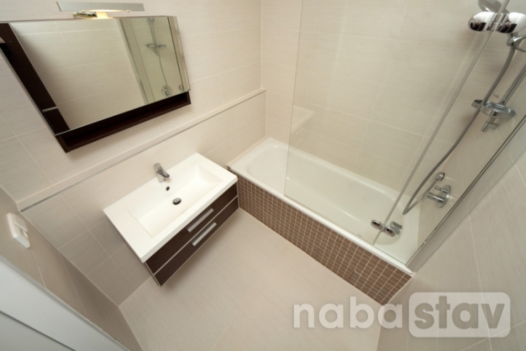 - osekání stávajících obkladů a dlažeb bytového jádra, vybourání části příčky mezi obývacím pokojem a kuchyní
