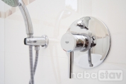 - podlahy v celém bytě - dřevěná trojvrstvá plovoucí podlaha click, buk parketový vzor, vyrovnání nivelační stěrkou na nové betonové podlahy