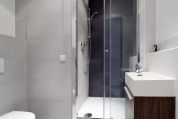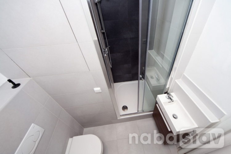 - rekonstrukce bytového jádra ve změněné dispozici (koupelna spojena s WC)
